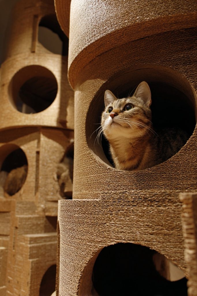 It is a well-known fact in the pet community that cats have an almost magnetic attraction to cardboard boxes. You can lean into this preference by creating a sustainable cardboard castle using modular kits or DIY techniques to build a series of interconnected tunnels and towers. Cardboard is a fantastic material because it is warm, holds a cat’s scent well, and provides a satisfying texture for light scratching and rubbing. These structures are lightweight and easy to rearrange, allowing you to change the layout of the room whenever your cat needs a new challenge or a fresh perspective. Because cardboard is easily recyclable, you can replace worn-out sections without guilt, ensuring your pet always has a clean and sturdy fortress to explore. It is an affordable way to provide endless hours of hide-and-seek fun and a sense of cozy enclosure.