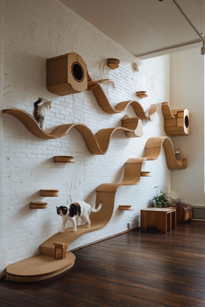 For the ultimate in feline exercise, a modular wall circuit takes the idea of climbing to the next level by creating a continuous path around the perimeter of the room. This might involve a series of wall-mounted pods, cork-lined ramps, and circular holes that allow a cat to move from one side of the space to the other without ever touching the floor. These circuits encourage agility and provide a fantastic cardiovascular workout as your cat chases a toy or simply explores the path. The modular nature of these systems means you can start with a few pieces and slowly expand the circuit over time as your budget or space allows. It turns the walls of your home into a functional work of art that serves the physical needs of your feline while acting as a modern design element for the room.