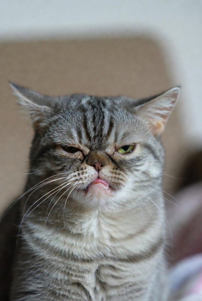 Sometimes, a cat will pull their lips back just enough to hide their teeth but emphasize their chin, resulting in a look that can only be described as a grumpy old man who lost his dentures. This face is often paired with a heavy, squinty-eyed glare that suggests they are very disappointed in the service at this particular establishment. It is a look of silent, pouty judgment that makes you want to apologize for things you haven’t even done yet.