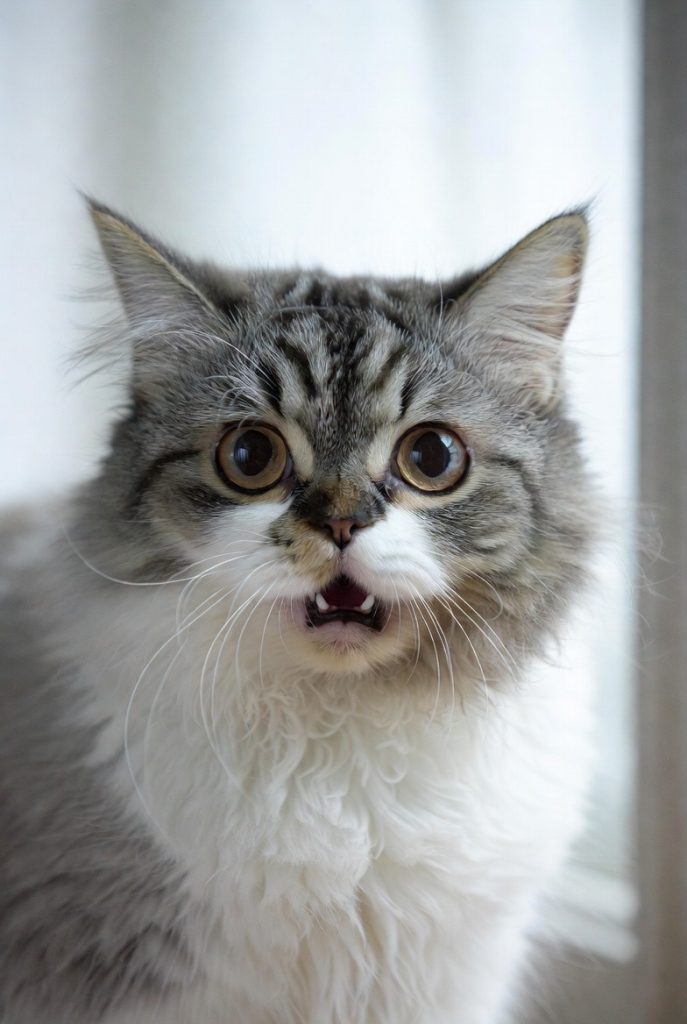 While we don’t recommend giving cats cold treats, the occasional stolen lick of ice cream can result in a face of pure, frozen regret. The ‘brain freeze’ expression is a mix of shock, wide eyes, and a mouth that is stuck in a permanent ‘O’ shape. They look like they have just discovered a fundamental flaw in the laws of thermodynamics. It is a momentary lapse in judgment that is written all over their shocked little face.
