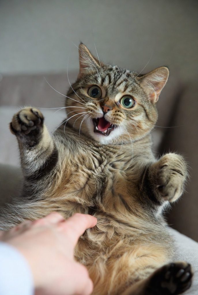 The belly rub is a dangerous game. One moment, your cat is purring and inviting you in; the next, you have touched the forbidden fluff, and their face transforms into a mask of absolute horror. Their eyes go wide, their mouth opens in a silent ‘how dare you,’ and they look at their own stomach as if it has been compromised by an enemy force. It is a face of high-stakes betrayal that usually precedes a very fast ‘bunny kick.’