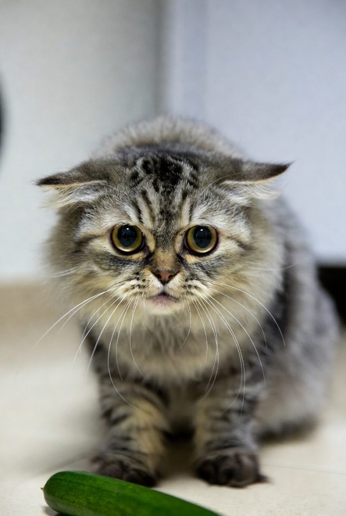 When a cat gets spooked by something mundane, like a cucumber or a rogue toaster, their whole face changes along with their body. Their ears go flat against their head (the ‘airplane ears’), their eyes become enormous, and their whiskers move forward. They look like they are trying to process a threat that doesn’t actually exist. The sheer intensity of their fear over a piece of produce is a hilarious reminder of how high-strung their instincts can be.