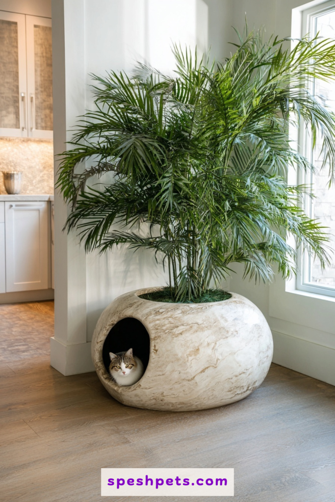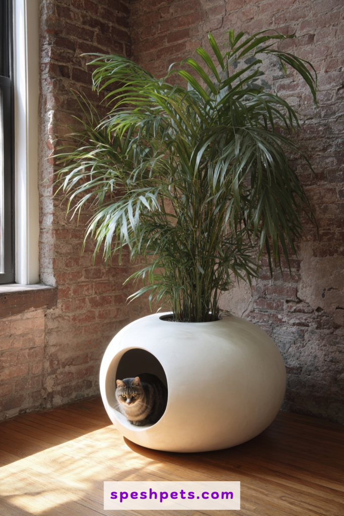 Large, faux-stone or ceramic planters are now being manufactured with hollow bases specifically designed to hide litter boxes. These items are perfect for homeowners who want to add greenery to their space while solving a practical problem. The cat enters through a discreet hole in the side, and the top of the planter holds a realistic artificial plant. This is perhaps the most deceptive hiding spot, as most guests will never suspect that the beautiful palm in the corner is actually a feline restroom. It adds a fresh, natural aesthetic to your home while keeping the less glamorous parts of pet care completely out of sight and mind.