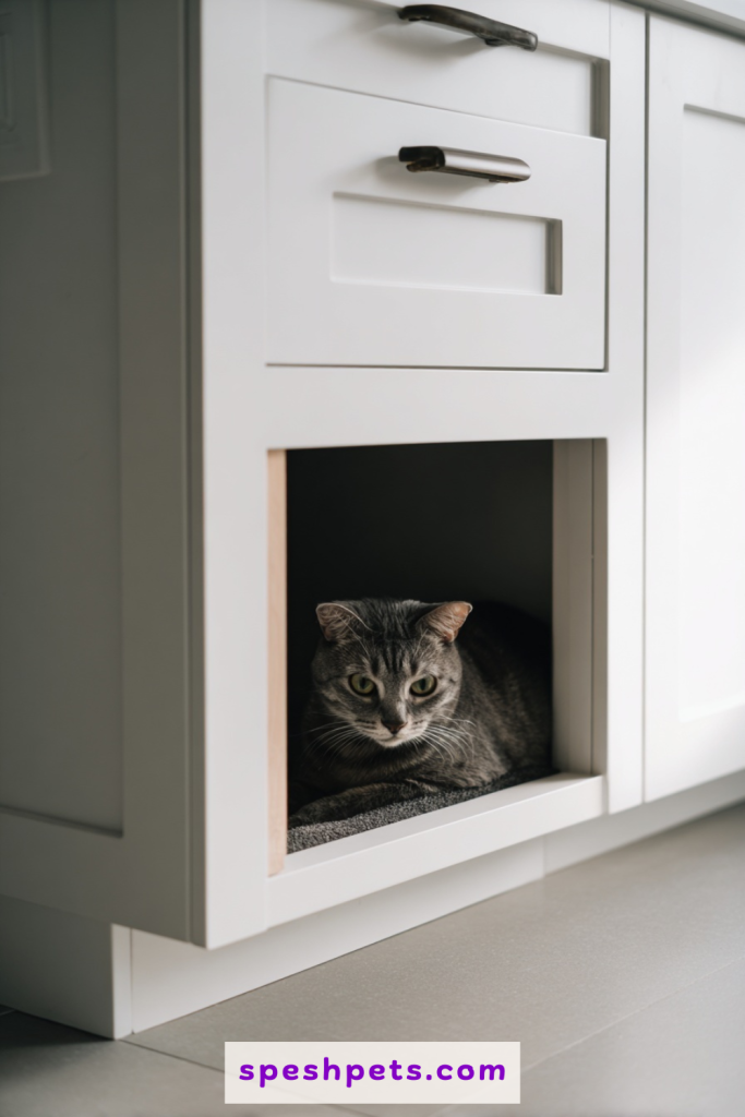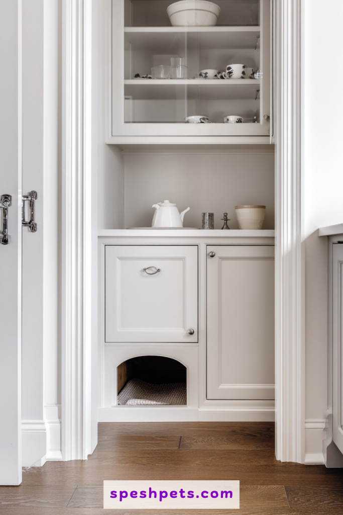 Integrating a litter box directly into your built-in cabinetry is perhaps the most seamless solution for a truly modern, minimalist home. By dedicating one lower cupboard in a hallway or mudroom to the cat, you eliminate floor clutter entirely. You can install a small cat-flap in the door or leave a subtle, arched opening at the base. This method allows you to match the finish and hardware of the enclosure to the rest of your kitchen or bathroom, making the litter area virtually invisible to guests. It also provides extra vertical space within the cabinet to store scoops, extra bags, and deodorizing sprays, keeping all your supplies centralized and tidy.