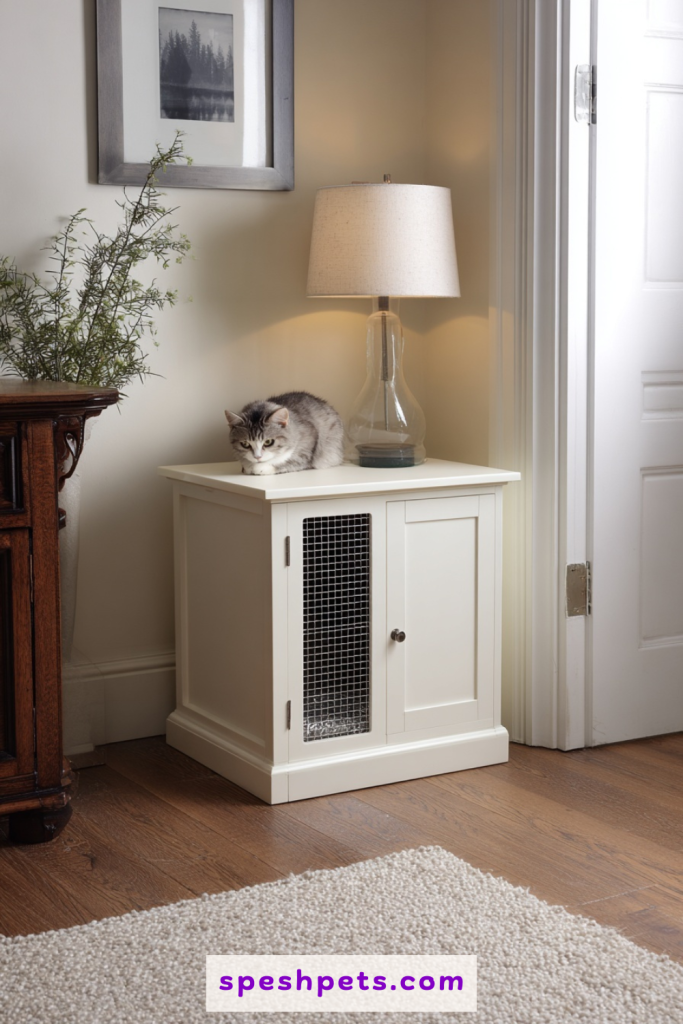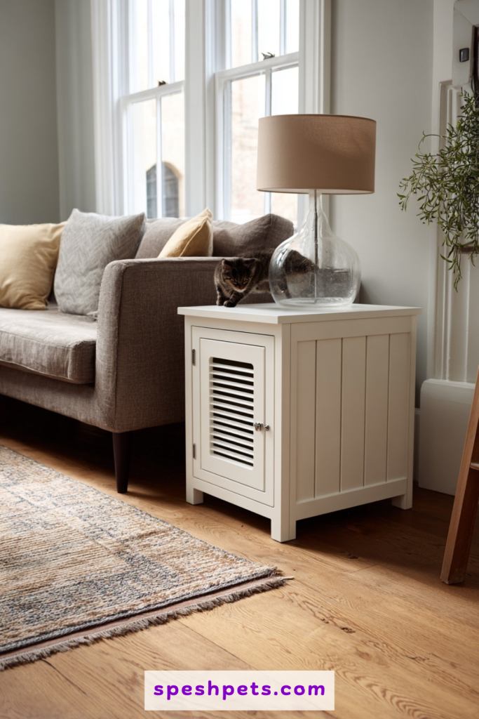 Many furniture retailers now offer side tables specifically designed to house a standard-sized litter pan. These pieces serve a dual purpose, acting as a functional surface for a lamp or a stack of books while secretly containing your cat’s business below. The design usually features a vented back for airflow and a large front door for easy access during cleaning time. Choosing a style that matches your existing coffee table or nightstand ensures that the room feels cohesive rather than fragmented by pet accessories. It is a brilliant way to reclaim floor space in smaller apartments where every square inch of real estate is precious and must serve a clear aesthetic purpose.