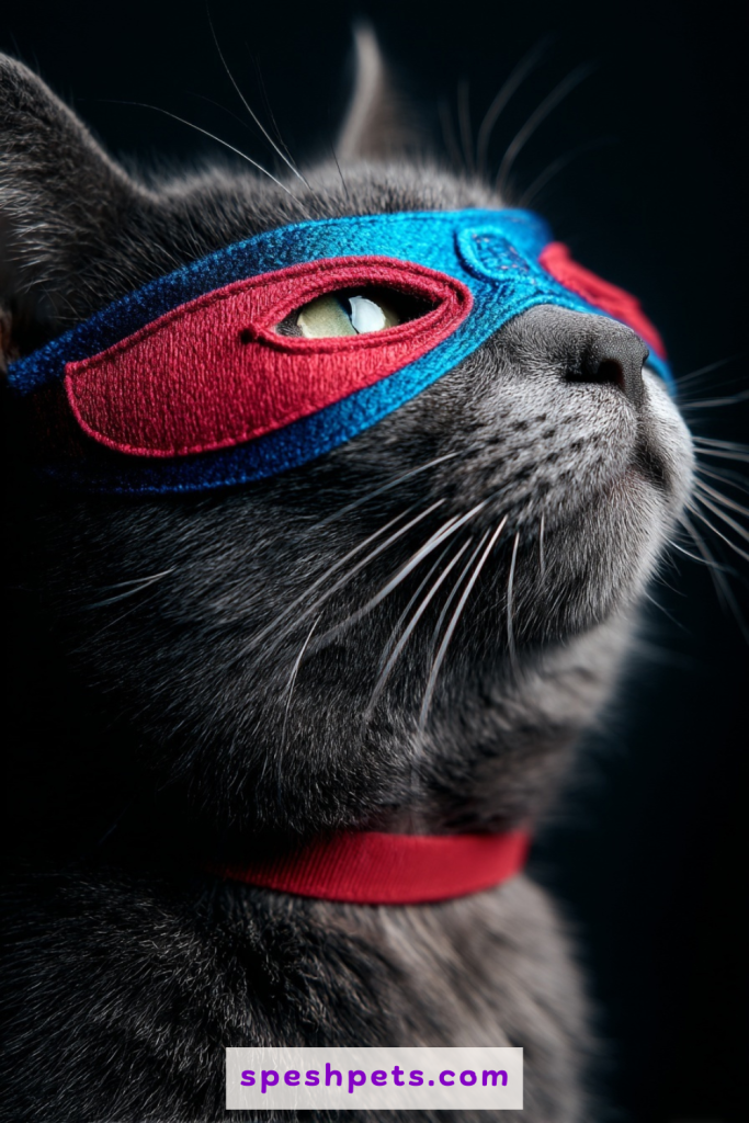 Every cat owner knows their pet has secret powers, whether it is the ability to open cabinets or vanish into thin air, so a superhero mask is a fitting tribute. Think of a classic, sleek eye mask in vibrant shades of primary blue or bold red, perhaps with a small emblem in the center. This design is usually the most comfortable for cats because it sits high on the bridge of the nose and doesn’t interfere with their whiskers or peripheral vision. It transforms your sleeping tabby into a guardian of the household, ready to defend the kitchen from imaginary intruders. This playful look is a fan favorite for quick social media updates and brings a sense of heroic energy to their daily nap schedule.