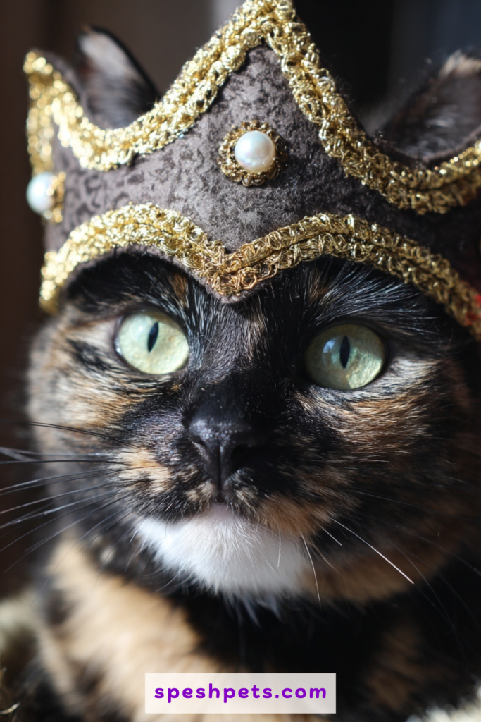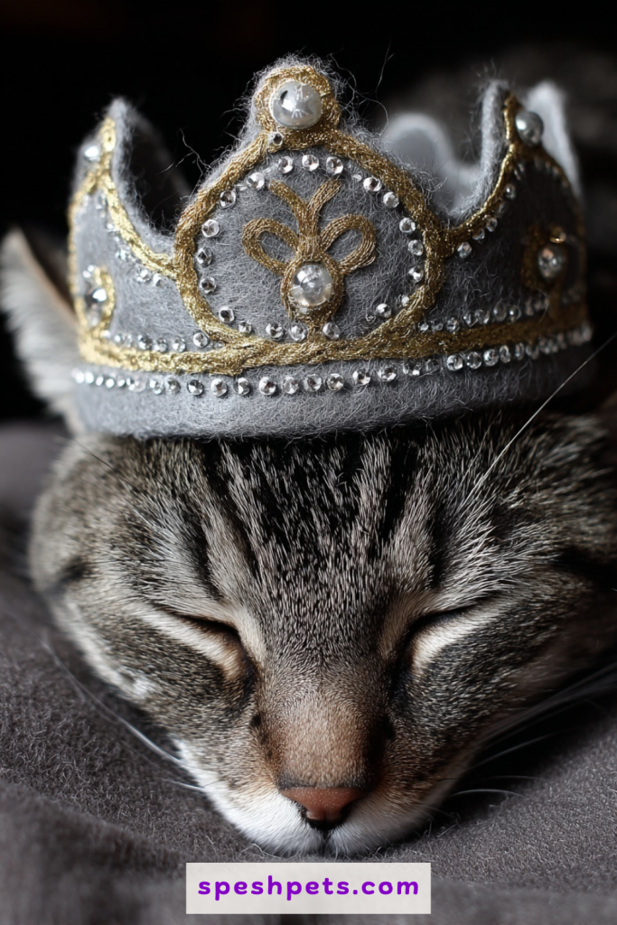 Merging the concept of a crown with a mask creates a regal accessory that truly honors your cat’s position as the head of the household. This design usually features a high, pointed peak decorated with faux jewels and glittering trim that sits just above the eyes. It combines the authority of a monarch with the mystery of a masked ball, resulting in a look that is both hilarious and genuinely impressive. Choosing soft, felt-backed materials ensures that the crown stays in place without causing discomfort. This is the ultimate choice for birthday celebrations or special milestones, emphasizing that your cat isn’t just a pet, but a ruler who deserves a bit of festive pomp and circumstance.