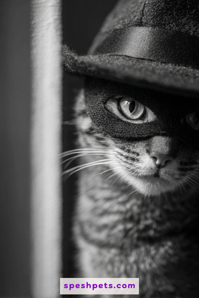 For the cat who is always investigating strange noises or staring intently at shadows, a film noir detective look is a witty choice. This involves a small, tilted fedora-style mask or a simple dark eye-mask that gives them a mysterious, brooding appearance. You can almost imagine them narrating their day in a gravelly voice while they sit by the window. This style works best with a monochromatic color palette, blacks, grays, and whites, to capture that vintage cinematic feel. It is a clever, character-driven idea that plays into the natural curiosity of felines, turning their everyday habits into a dramatic scene from a classic mystery movie.