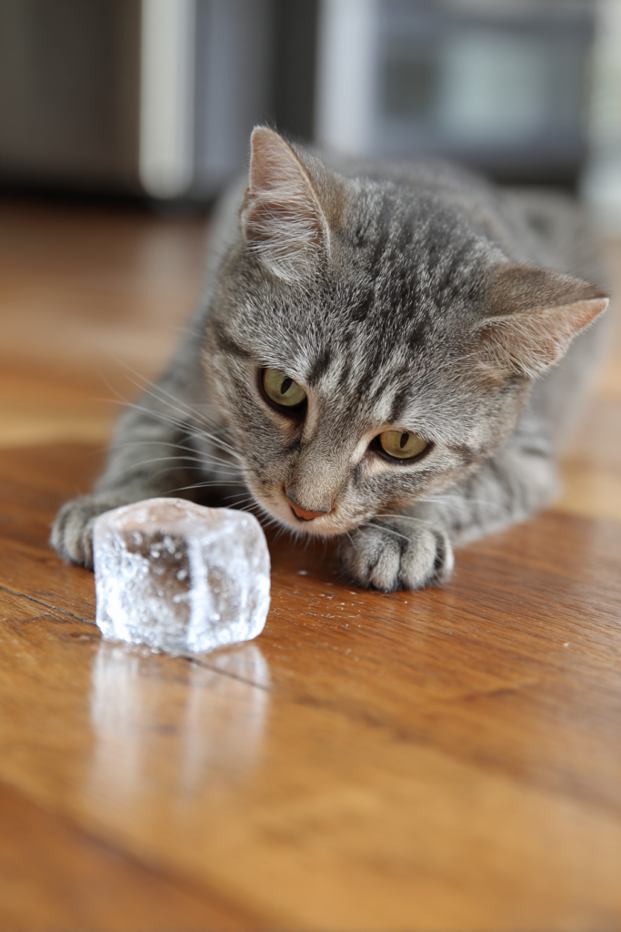 In the heat of a summer afternoon, a single ice cube dropped onto a hard kitchen floor can turn into the most exciting sporting event of the season. The slippery, melting surface of the ice makes it incredibly difficult for a cat to get a firm grip, leading to a fast-paced game of soccer where the ball is constantly changing direction. Your cat will likely spend several minutes batting the cube across the floor, chasing it with frantic energy until it eventually slides under the refrigerator or melts away. This activity provides a great sensory contrast, as the cold sensation on their paws keeps them engaged and alert during the chase. It is a simple, mess-free way to encourage movement and provide a bit of cool relief on a warm day without spending a single cent.