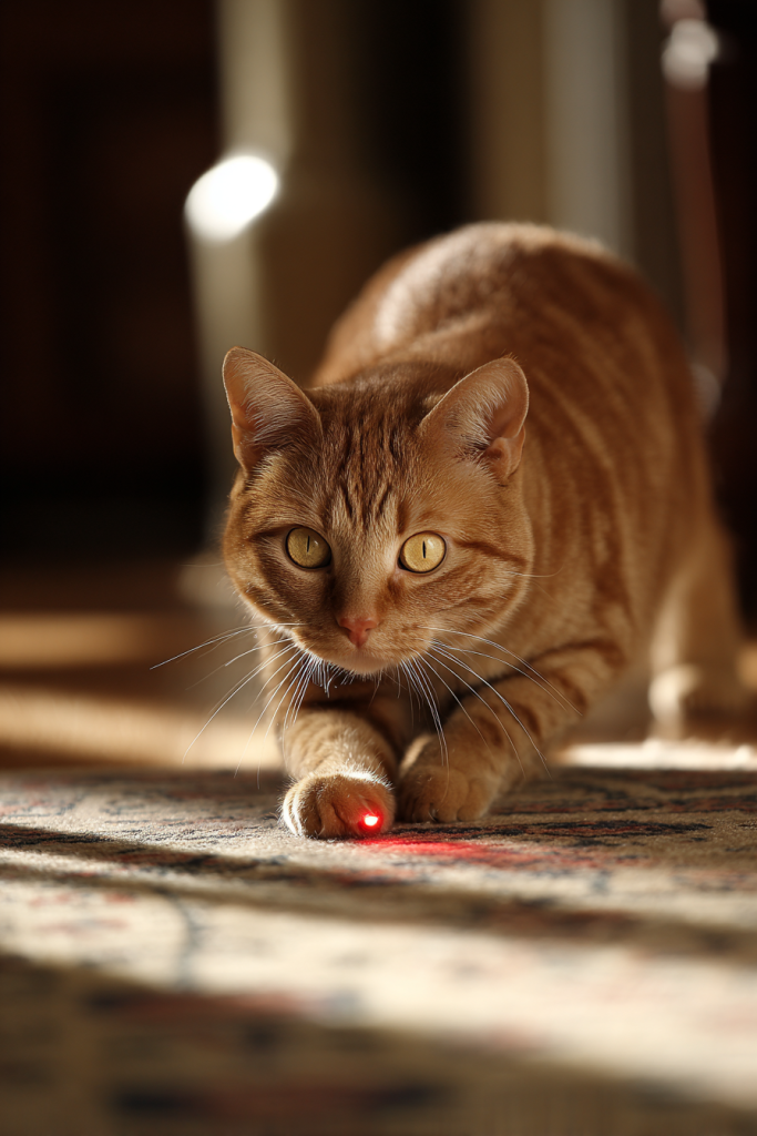 The elusive red dot of a laser pointer is perhaps the most famous feline foe, capable of sending a cat into a state of absolute, focused frenzy. Moving the light across walls, over furniture, and under chairs forces your cat to navigate obstacles at high speeds, providing a level of cardio that few other toys can achieve. To make the game more satisfying and prevent psychological frustration, always end the session by landing the light on a physical toy or a hidden treat. This allows your cat to finally catch their prey, ending the hunt on a high note and allowing their nervous system to relax. It is a low-effort way for you to provide high-impact entertainment, especially after a long day when you might not have the energy for more active play.