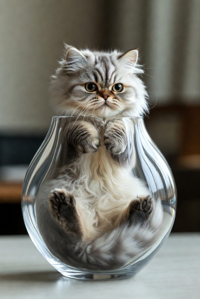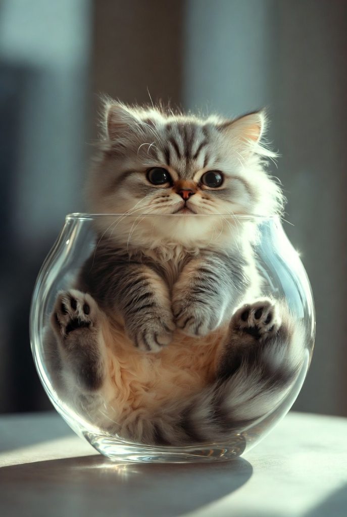 There is a long-standing joke that cats are actually a liquid, and looking at one tucked into a tiny glass bowl or a shoebox three sizes too small, it is hard to argue. They have a strange obsession with fitting themselves into the most restrictive spaces possible. Seeing a fluffy cat successfully pour themselves into a circular vase or a flat mailing envelope is a masterclass in feline geometry that never fails to get a laugh.