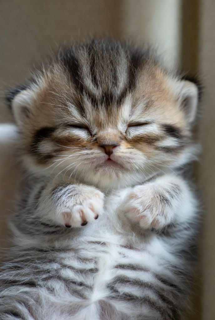 There is no greater sign of trust than a kitten sleeping on its back with its tiny pink paws tucked into the air. At this age, their bellies are often round and soft, looking like little fuzzy pears. When they reach that deep level of sleep, they are completely oblivious to the world, occasionally twitching their whiskers as they dream of giant bowls of milk or high-speed chases. It is a scene of pure, unadulterated peace that makes you want to whisper and walk on eggshells just to keep the moment going.