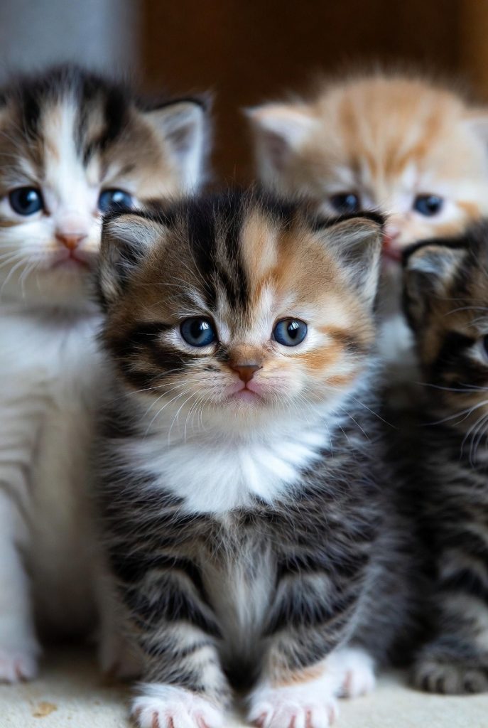 Calico kittens, with their vibrant patches of orange, black, and white, are often as spirited as they are beautiful. There is an old legend that calicos bring good luck, and it is hard to disagree when one is purring in your lap. Their coats are like abstract paintings, ensuring that no two calicos ever look exactly the same. They tend to have a bit of attitude from a young age, knowing full well that they are the most colorful and interesting things in the room.