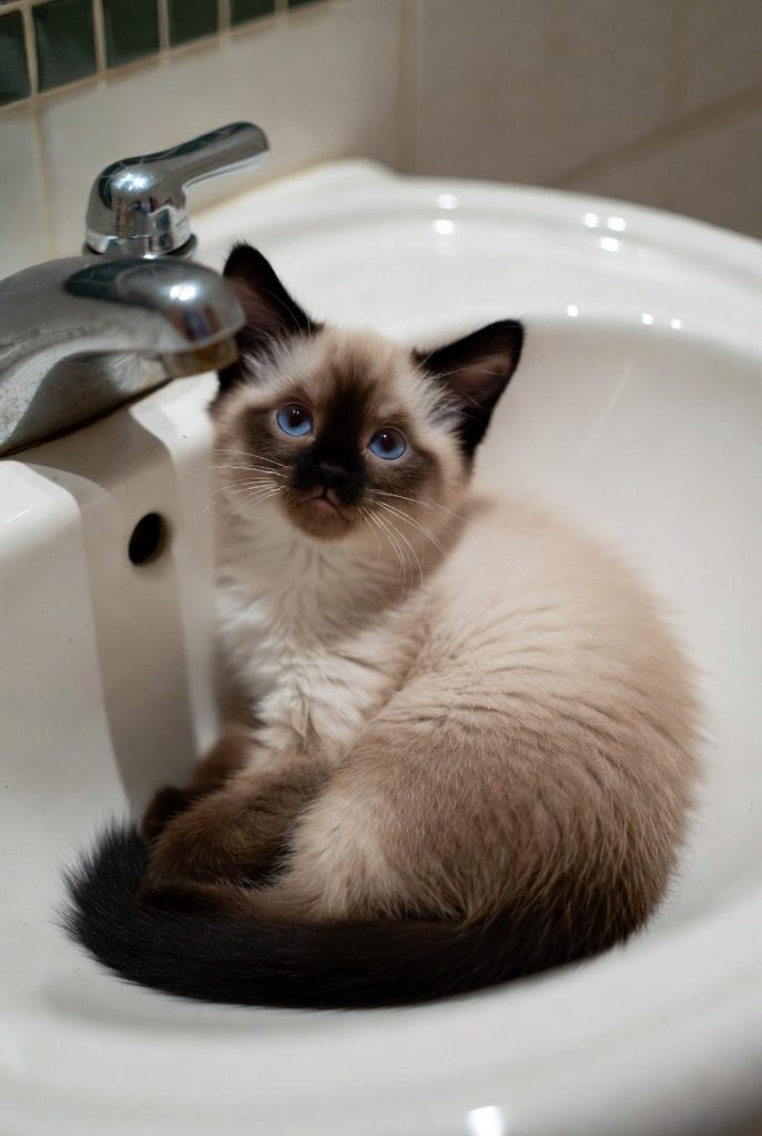 Siamese kittens are known for their striking points, the dark fur on their ears, tails, and paws, and their incredibly vocal personalities. They are often the first to tell you when they are hungry or when they feel they aren’t receiving enough attention. Seeing a tiny, cream-colored Siamese curled up in a bathroom sink, which they treat like a porcelain throne, is a lesson in feline elegance. They carry themselves with an air of sophisticated mischief that stays with them throughout their lives.