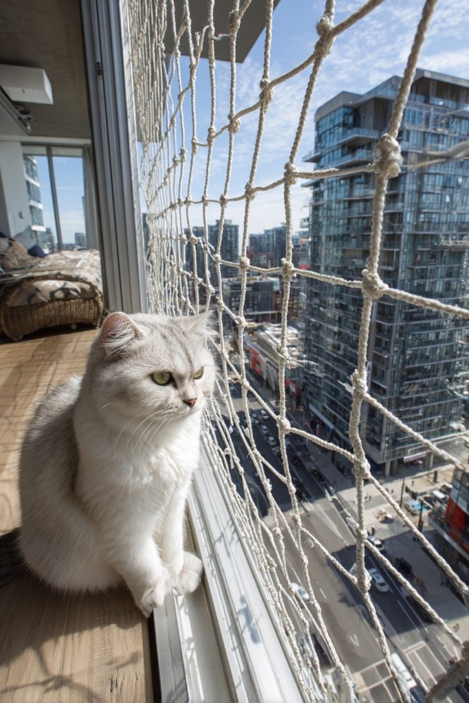 Living in a high-rise apartment does not mean your cat has to stay entirely indoors, thanks to the modern balcony mesh wrap. This solution involves installing a discreet but incredibly strong netting or mesh from the floor to the ceiling of a balcony, creating a completely enclosed space. It allows city-dwelling cats to enjoy the high-altitude views and the bustle of the streets below without the terrifying risk of a fall. The mesh is often designed to be almost invisible from the street, preserving the look of the building while providing a life-changing extension of the apartment for your pet. It is an essential safety measure for urban pet owners that transforms a potentially dangerous area into a favorite lounging spot for a sun-loving kitty.