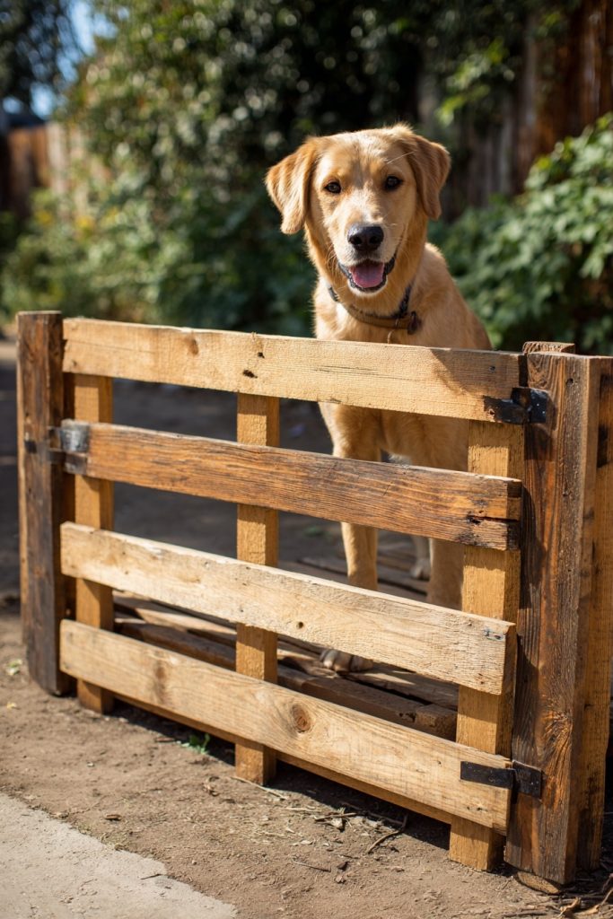 There is a unique sense of satisfaction that comes from transforming a discarded wooden pallet into a sturdy, rustic gate that adds character to your home. This project is perfect for larger dogs that might easily knock over a lighter barrier, as the solid weight of the pallet provides a natural sense of permanence and security. After a thorough sanding to remove any splinters and a fresh coat of stain, these gates look like high-end farmhouse decor rather than a simple pet utility. The gaps between the slats allow your dog to maintain visual contact with you, which can significantly reduce separation anxiety for more sensitive breeds. By repurposing materials that might otherwise go to waste, you are creating a durable piece of furniture that honors your budget while providing the heavy-duty protection your adventurous pet requires.