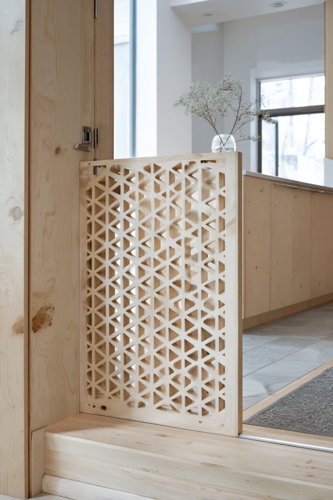 For the homeowner who values a clean, minimalist aesthetic, a plywood gate with geometric cutouts offers a sophisticated way to manage your pet’s movements. Using a jigsaw to create patterns like honeycombs or simple circles provides ventilation and visibility while maintaining the structural integrity of the wood. This style of gate is thin enough to stay out of the way but rigid enough to stop even the most persistent jumpers from pushing through. The light, natural color of birch or pine plywood brings a Scandinavian feel to your space, helping to create a calm and airy atmosphere that can actually help soothe the symptoms of sensory burnout. It is a creative outlet that results in a functional piece of modern decor that you can be genuinely proud to display.