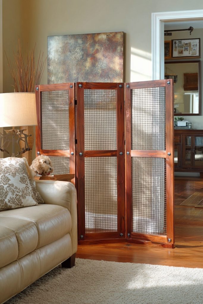 A freestanding folding screen offers the most versatility of any DIY gate because it can be angled to block off various widths and then tucked away in a closet when it is not needed. You can construct these by hinging three or four narrow wooden frames together and filling them with wire mesh, fabric, or decorative panels. Because they do not require mounting to the wall, you can use them in the middle of a room to create a playpen area or across a wide archway that traditional gates cannot reach. This flexibility is perfect for someone whose daily needs change frequently, allowing you to adapt your home’s layout to your current energy levels. The ability to simply fold the entire thing up and put it out of sight is a huge win for maintaining a clutter-free environment.