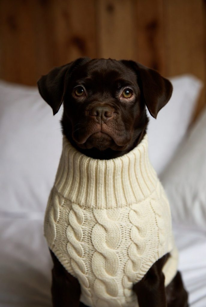 Nothing says “timeless elegance” quite like a thick, cream-colored cable-knit sweater. This look is the cornerstone of the preppy dog aesthetic because it provides both warmth and a sophisticated texture that looks incredible on camera. When choosing a sweater for your pup, look for high-quality wool or cotton blends that show off the intricate braided patterns. This style works exceptionally well for breeds with darker coats, like Chocolate Labs or Black Pugs, as the light color provides a striking contrast. It evokes images of crisp autumn walks and cozy evenings by a fireplace, making it a must-have for any fashion-forward pet.