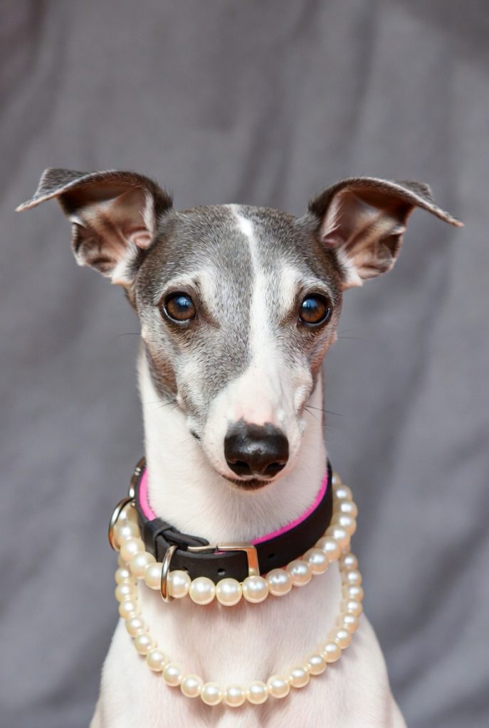 Preppy style isn’t just for the “gentlemen”; the “ladies” of the dog world can lean into the socialite aesthetic with a string of faux pearls. This look is often associated with the classic French style or the timeless elegance of figures like Audrey Hepburn. A simple strand of white pearls against a black or pink collar is incredibly chic. This is a fantastic choice for breeds with elegant necks, like Greyhounds or Poodles. It is a dainty, refined accessory that adds a touch of “old-world” glamour to any dog’s appearance without being overly flashy.