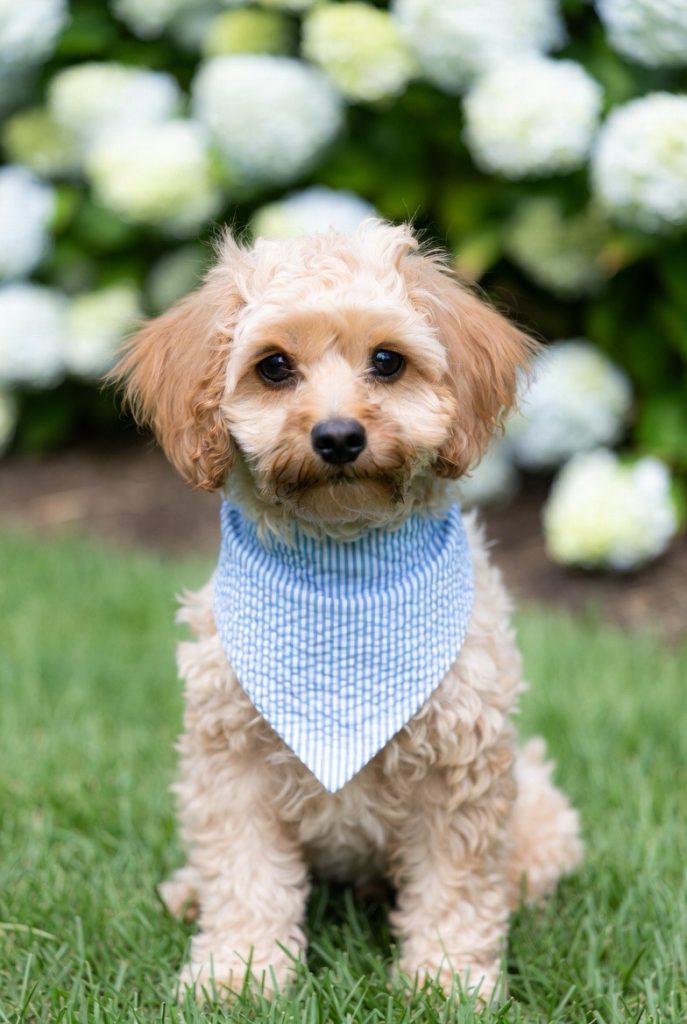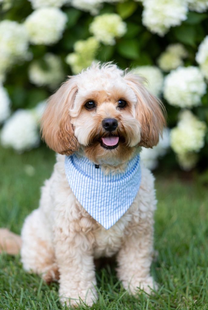 Seersucker is the fabric of the Southern gentleman, and its puckered texture and light blue stripes are perfect for a garden party or a summer wedding. A seersucker bandana or a small vest is a great way to incorporate this traditional fabric into your pet’s wardrobe. It is a very “clean” look that feels fresh and bright. Because the fabric is so breathable, it is one of the few “clothing” options that works well in higher temperatures. It pairs beautifully with a backdrop of white hydrangeas or a manicured green lawn.