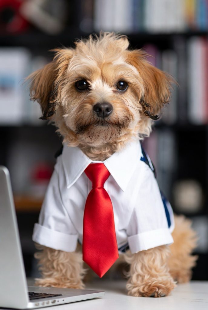 Finally, for the dog who is “the boss” of the household, the red power tie is a classic choice. Often seen in corporate environments, this look translates hilariously well to dogs, especially when they are sitting behind a desk or a laptop for a funny photoshoot. It is a bold, confident look that radiates leadership and charm. Pairing a red tie with a simple white shirt collar creates a very professional silhouette. It is a playful take on the preppy aesthetic that highlights the “human-like” qualities we love to project onto our favorite furry friends.