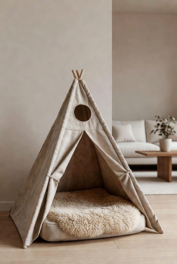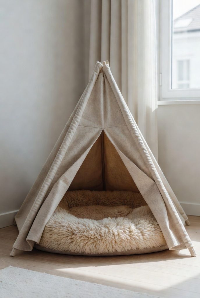 Teepees have become a staple in stylish homes, and they make incredible dog nooks for pups who love a bit of whimsy. These structures are portable, meaning you can move your dog’s favorite spot from the home office to the living room as your day progresses. A canvas or felt teepee with a thick sheepskin rug inside offers a cozy, den-like atmosphere that looks like a piece of contemporary art. It is a playful way to celebrate your dog’s personality while adding a trendy, structural element to your decor that guests will surely admire.