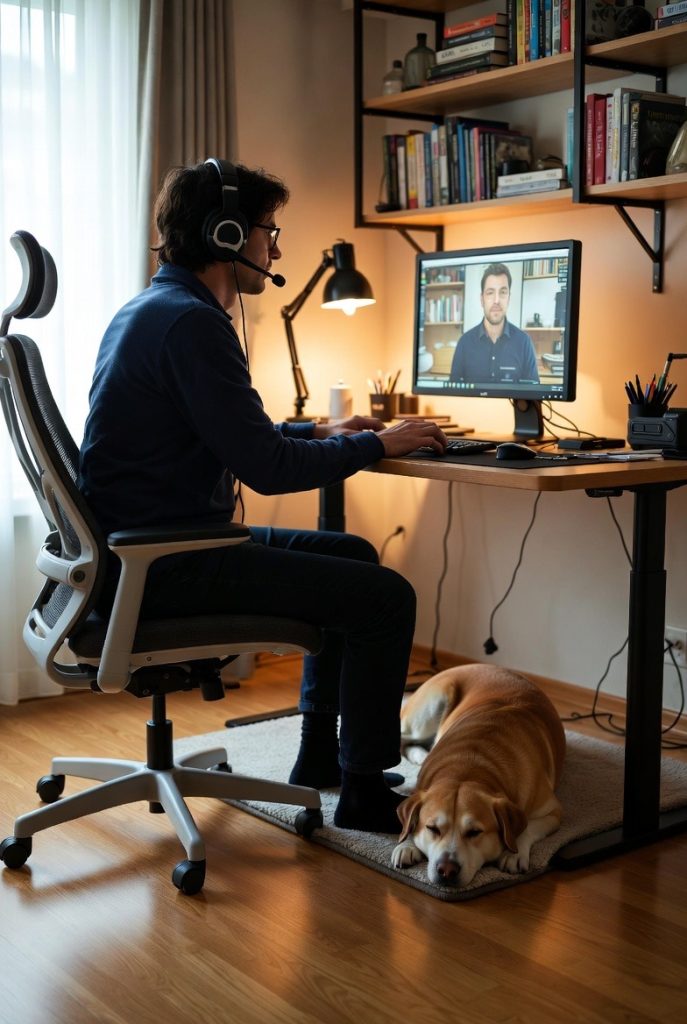 For those of us who work from home, having our dogs nearby is one of the best perks of the job. By clearing out the space under your desk and adding a soft rug or a slim bed, you create a workspace snug that keeps your pup right at your feet. It is a comforting arrangement for both of you, reducing the dog’s separation anxiety and giving you a stress-relieving companion during long meetings. This nook doesn’t require any extra floor space, making it an efficient choice for a home office that needs to remain professional yet pet-friendly.