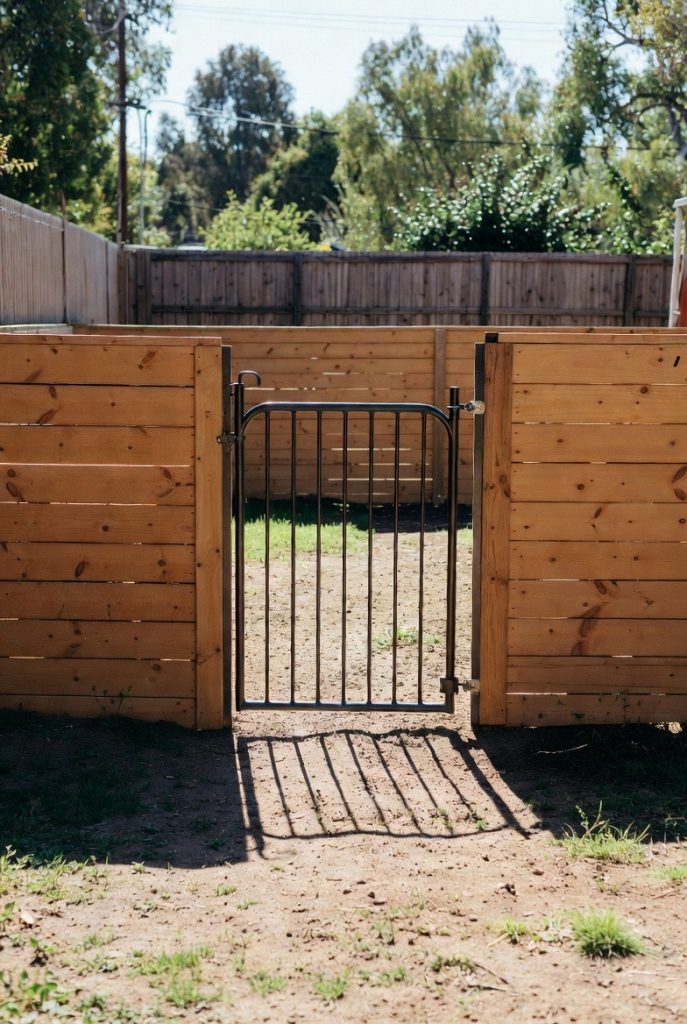 For the true escape artists, security is the top priority. A double-gated entry system, often called a ‘dog airlock’, ensures that there is always one closed barrier between your dog and the rest of the yard. This design is perfect for high-energy breeds that might try to bolt the moment they see the gate open. It provides peace of mind for you and a structured ‘waiting area’ for them.
