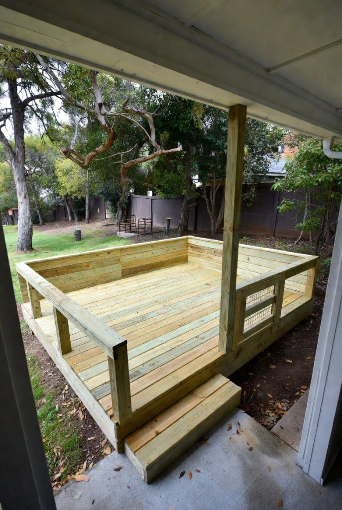 If your backyard is sloped or you prefer to keep your dog off the grass, an elevated wooden deck pen is a brilliant solution. Built as an extension of your existing porch, it keeps your dog at eye level with the family while they are outside. The elevated floor provides excellent drainage and stays much cooler than concrete or asphalt on hot summer days.