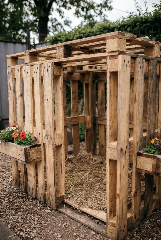 For a more artisanal and budget-friendly approach, repurposed wooden pallets can be sanded and stained to create a sturdy, rustic enclosure. The natural wood grain looks beautiful in a backyard setting, and the gaps between the slats allow for plenty of airflow. You can even attach small flower boxes to the outside to add a pop of seasonal color.