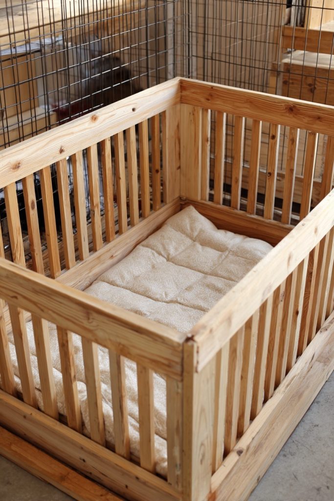 Reclaiming wooden pallets is a popular DIY trend that works well for creating a rustic and sturdy whelping box. By disassembling the pallets and using the planks to build a four-walled enclosure, you create a space that is both strong and well-ventilated. It is crucial to sand the wood thoroughly to prevent splinters and to ensure no gaps are large enough for a puppy’s head to get stuck. This project allows for significant customization, such as adding a swinging door or integrated food and water stations for the mother. It is a rugged, budget-friendly option for those who enjoy working with reclaimed materials.