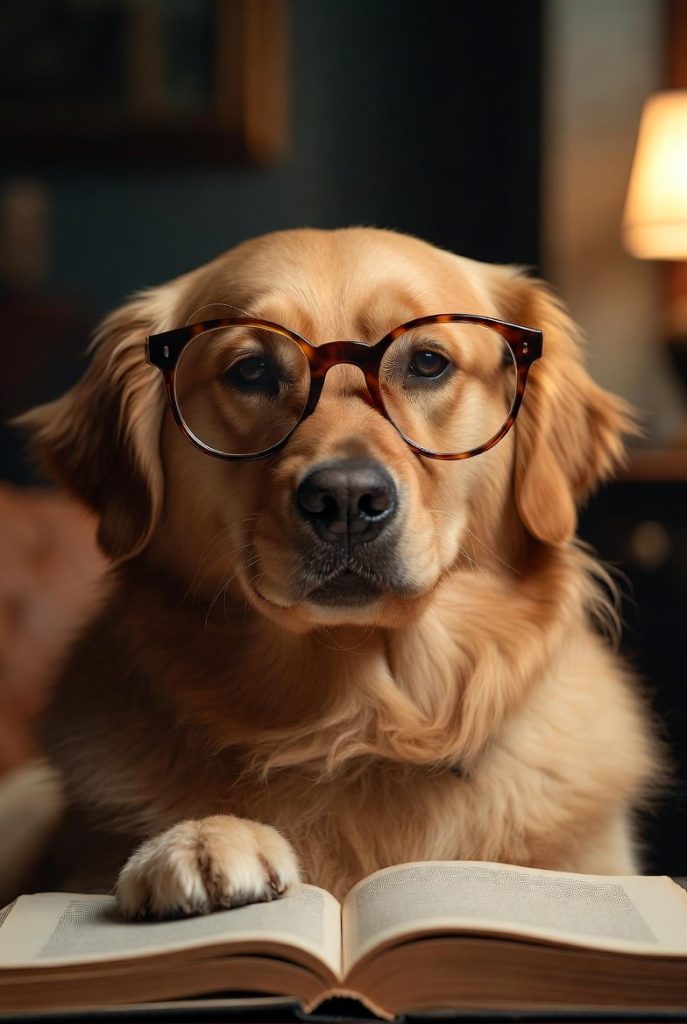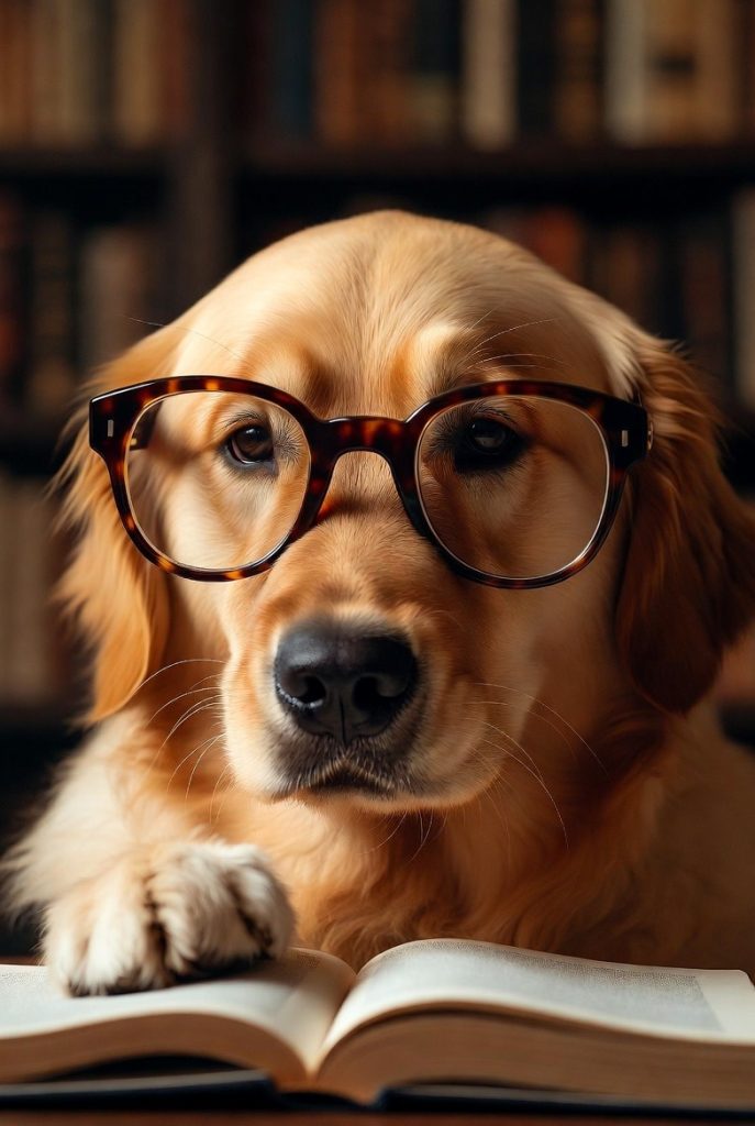 There is something about a Golden Retriever in oversized, tortoiseshell frames that just feels right. Known for their patient and gentle nature, the addition of glasses makes them look like the world’s most encouraging librarian. You can almost imagine them nudging a copy of a classic novel toward you with their nose. The way the frames sit against their golden fur creates a warm, academic aesthetic that is impossible not to smile at. It is the look of a dog who has definitely read the book but is far too polite to spoil the ending for you.