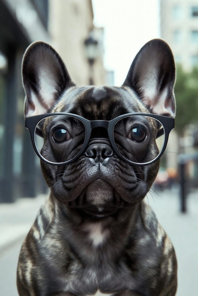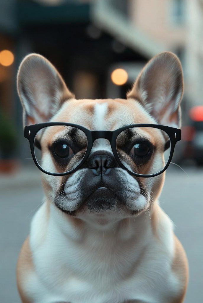 Frenchies are already the fashionistas of the dog world, but put them in a pair of sleek, black-rimmed thick glasses and they look like they just stepped out of a tech startup in a trendy metropolitan neighborhood. Their large, upright ears frame the glasses perfectly, creating a balanced and high-design silhouette. This look captures the quirky, slightly judgmental expression that French Bulldogs are famous for. They look less like they are going to play fetch and more like they are about to give you some very pointed feedback on your latest graphic design project.