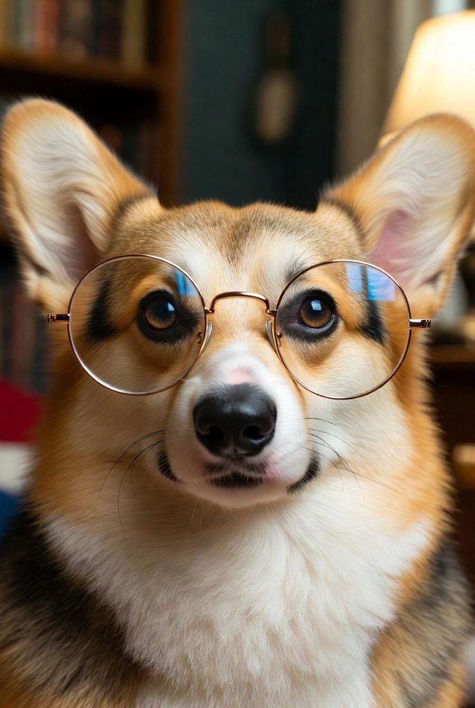 With their low stature and big personalities, Corgis in wire-rimmed spectacles are a comedic masterpiece. The glasses often look just a bit too large for their faces, giving them the appearance of a dedicated history professor who has spent a bit too much time in the archives. Their bright, intelligent eyes shine through the lenses, making it look as though they are mid-lecture on the importance of the treat-to-nap ratio. It is a studious and adorable look that perfectly matches the breed’s reputation for being both smart and a little bit bossy.