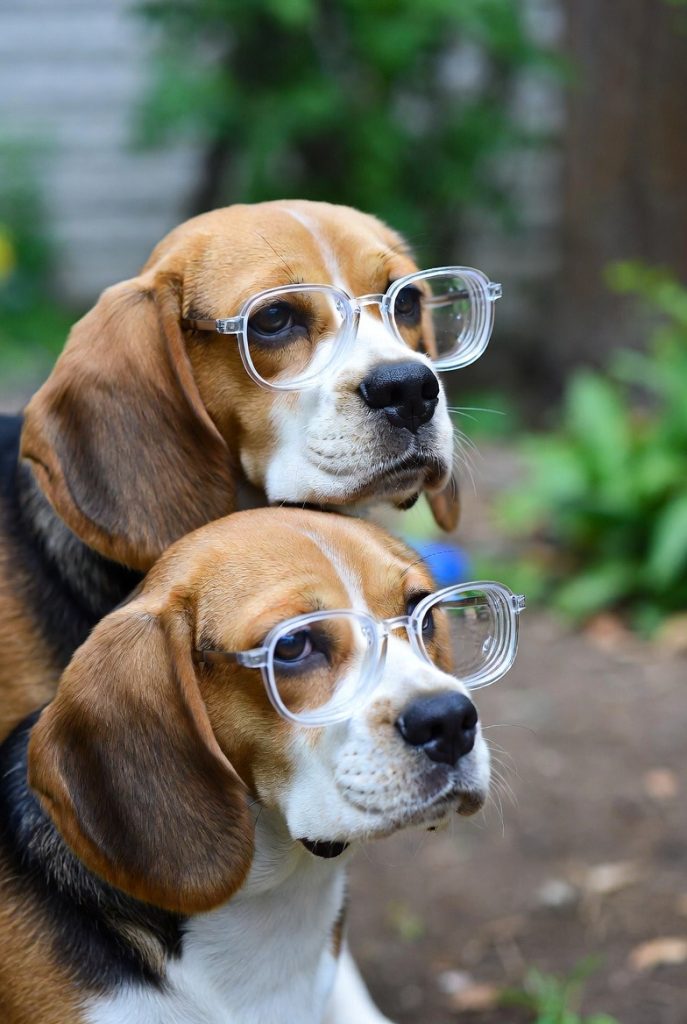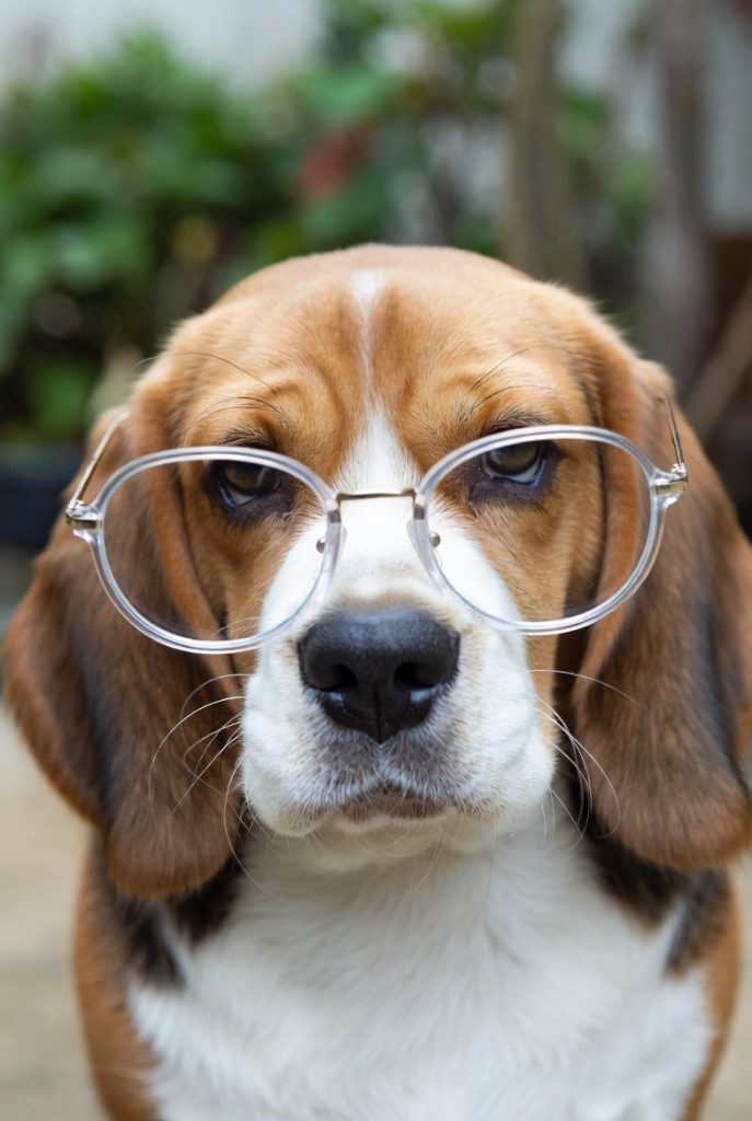 Beagles are natural trackers, and a pair of classic, clear-framed glasses makes them look like they are on the verge of cracking a major case. Their long, floppy ears and inquisitive noses work in tandem with the glasses to create a look of intense investigative curiosity. You can almost see them sniffing out clues in the backyard, their spectacles glinting in the sun as they follow a cold scent. It is a playful and adventurous look that celebrates the Beagle’s heritage as a scent hound with a modern, scholarly twist.