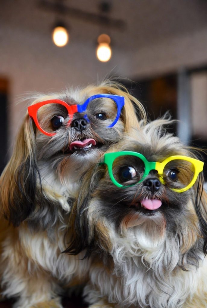 Shih Tzus are known for their beautiful, long coats and their status as royal companions, and in a pair of bright, colorful frames, they look like an eccentric art student. The glasses often nestle into the long fur around their faces, making the frames pop against their colorful coats. This look is fun, vibrant, and full of personality. They look like they would spend their afternoons in a coffee shop sketching the other patrons or discussing the merits of different types of silk ribbons. It is a joyful, stylish way to showcase the breed’s cheerful and affectionate temperament.