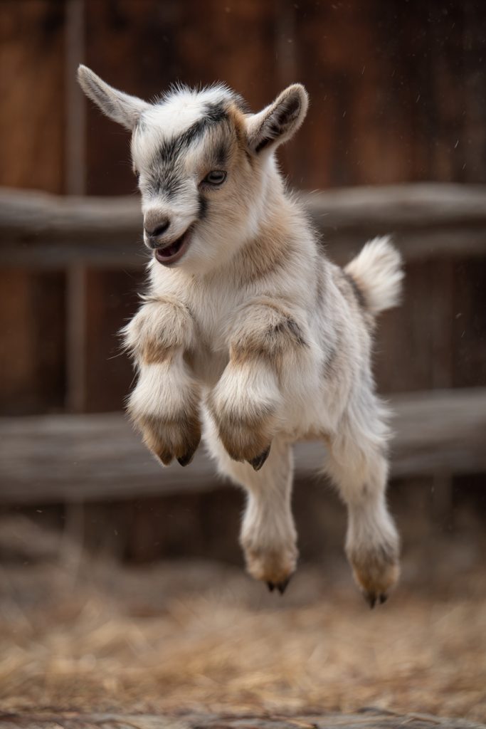 One of the most characteristic and hilarious behaviors of a young goat is the spontaneous vertical leap, often referred to as popcorn jumping. Without any warning, a kid will spring into the air with all four feet leaving the ground simultaneously, twisting its body in a display of pure excitement. This movement is not just about physical exercise; it is a visible expression of the sheer happiness they feel while exploring their environment. Watching a group of babies engage in this rhythmic bouncing is a masterclass in living for the moment. The physics of their jump, combined with the surprised expressions on their faces, makes for a captivating sight that instantly triggers a smile. It is a reminder that sometimes the best way to handle a burst of energy is simply to leap toward the sky without a second thought.