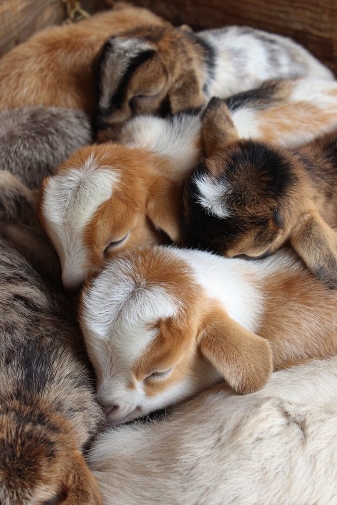 After a morning spent frolicking and climbing, baby goats have a unique way of winding down by huddling together in a soft, tangled pile of fur. Because they are social animals that rely on one another for warmth and security, these nap sessions are essential for their well-being and development. There is something deeply peaceful about seeing several kids tucked away in a corner of a barn, their rhythmic breathing and occasional twitches creating a scene of absolute serenity. The contrast between their high-energy play and their quiet, vulnerable rest highlights the balance of nature. These moments of stillness allow us to appreciate the softer side of farm life, where the only thing that matters is the comfort of a friend and the warmth of the sun streaming through the rafters.
