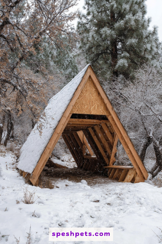 The A-frame design is a timeless architectural choice for goat shelters because its steep roof pitch naturally sheds heavy snow and prevents water from pooling. This triangular shape is inherently stable, making it a great choice for regions that experience high wind speeds or frequent storms. You can build these huts using standard dimension lumber for the frame and cladding them with exterior-grade plywood or cedar shingles for a more aesthetic, rustic look. Because the interior space narrows toward the top, it creates a cozy microclimate that helps the goats retain their body heat during chilly nights. Adding a small loft area inside the peak can even provide extra storage for hay or a secondary resting spot for the more adventurous climbers in your herd.