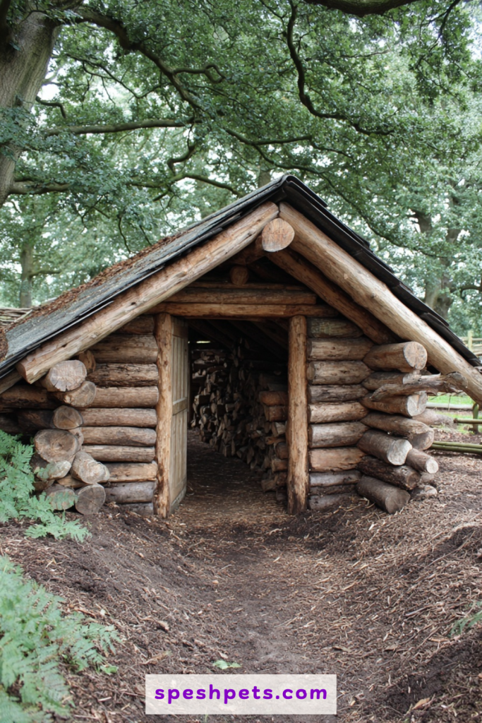 For those with access to their own timber, building a log cabin style lean-to is a rewarding way to create a sturdy and attractive shelter. By stacking notched logs on three sides and topping them with a simple shed-style roof, you provide a wind-resistant space that feels natural in a wooded paddock. The gaps between the logs can be chinked with a mixture of mud and straw to keep out drafts, or left slightly open for natural ventilation in warmer climates. This type of shelter is particularly robust and can handle the rough-and-tumble behavior of larger breeds who might accidentally knock over lighter structures. It is a permanent investment that adds a touch of craftsmanship to your farm.